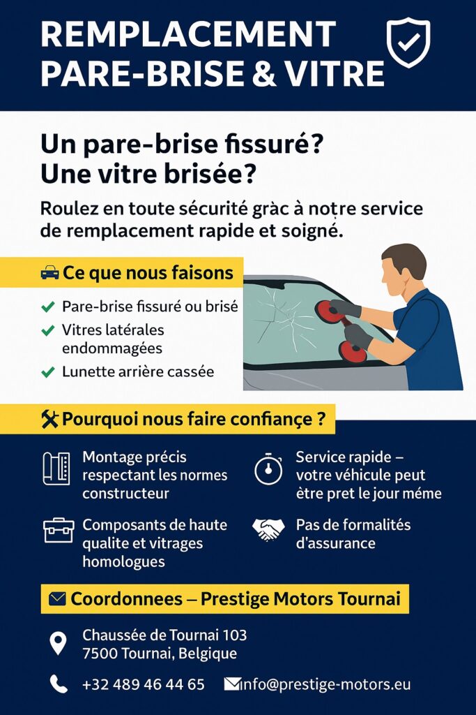 Remplacement Pare-Brise & Vitres 🛡️ – Prestige Motors (Tournai)